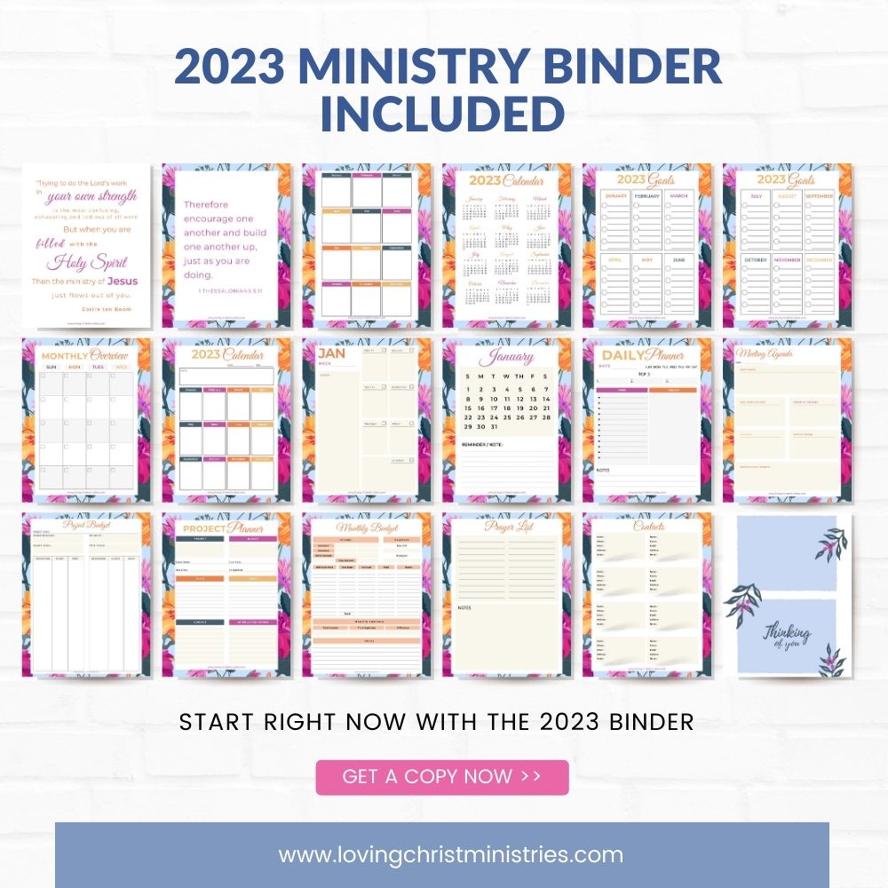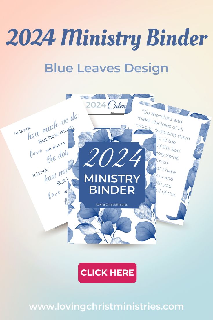 2024 Women’s Ministry Binder Blue Leaves Design โ Loving Christ